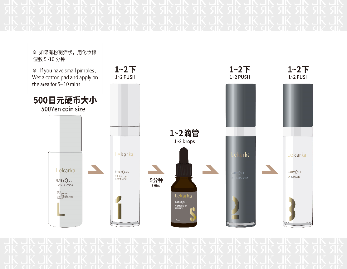 Five Steps: Lekarka’s most popular products of the Royal series are [ Lactpep lotion] [01 CF Serum Advance] [Stem Bright Essence L] [ 02 SYM Serum EX] [ 03 EX Cream]